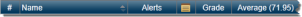 Use these procedures to manage what and how student information is displayed in the Gradebook Entry page. The Student Information columns can display student names and student-specific information. The leftmost column on the Gradebook page is the scores grid row number which always displays, but you can choose to display or hide any of the other student information columns. The columns available are: Name, Alerts, Notes, Grade, Student Average, Student ID, Course (course and section number), and Performance (this displays a "sparkline" chart to show each student's scoring trend for the displayed assignment grades).